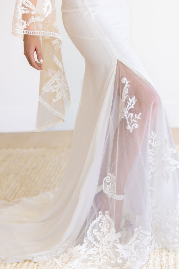 Want a gown that transitions from ceremony to reception? Detachable overskirts give you the best of both worlds: a dramatic walk down the aisle and a lighter, dance-ready gown underneath.