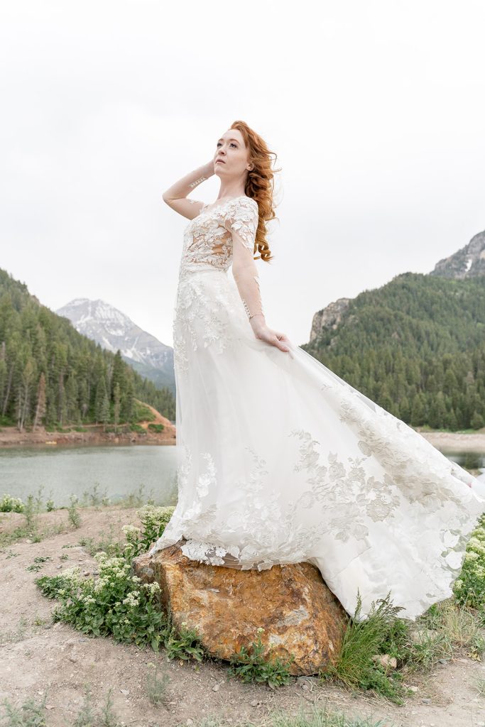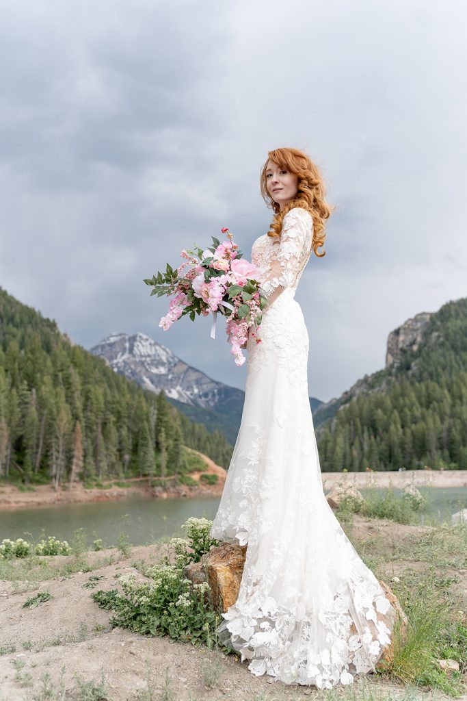 A high neckline is timeless and regal, and it’s trending again for 2025. Whether you choose a mock neck, jewel neckline, or scalloped lace detail, this design element adds sophistication while honoring modesty.