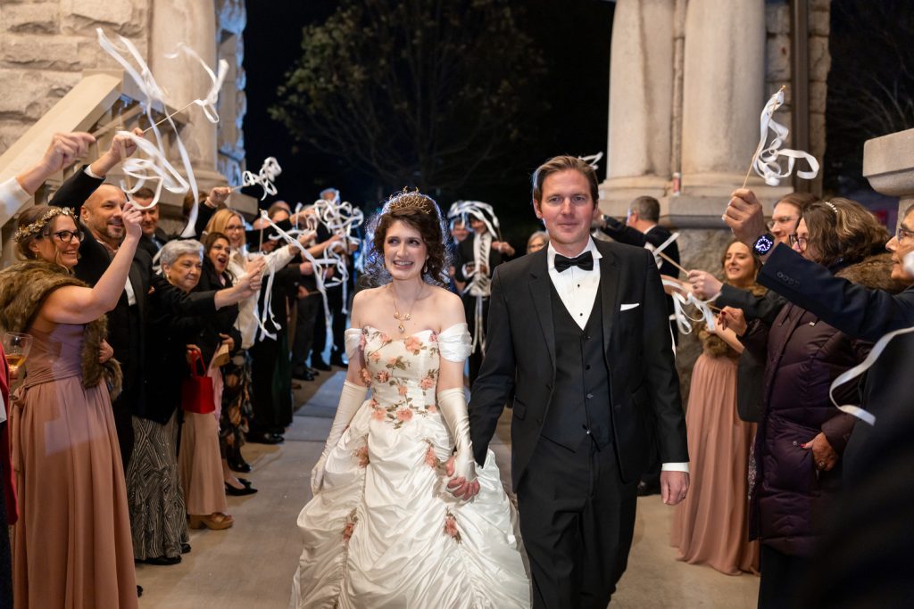 It turned out there were so many other preparations to handle, I forgot to be anxious about waiting for my dress! With my background in tradeshow management (I actually converted my custom tradeshow planner into a wedding planner!), my husband and I both agreed to let me handle most of the plans. I busied myself with designing centerpieces and programs; choosing a wine list; writing our ceremony script; selecting a cake; finding the right shoes, gloves, and jewelry to go with my dress; and carefully curating playlists from fairytale-themed films, operas, and Broadway musicals. I had such a great experience with all the coordination and then the event itself, I am now considering taking on other people’s wedding planning as a side gig!