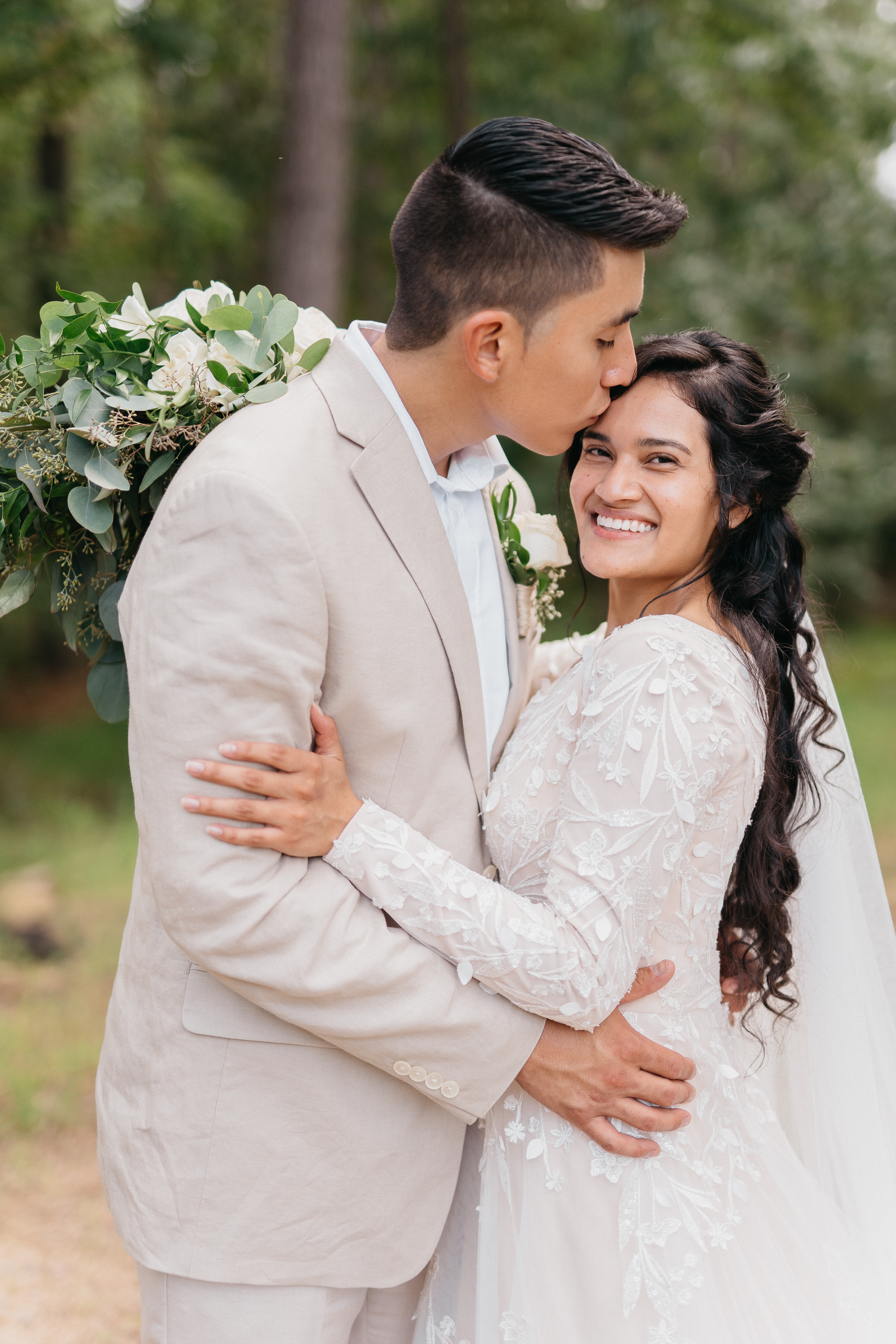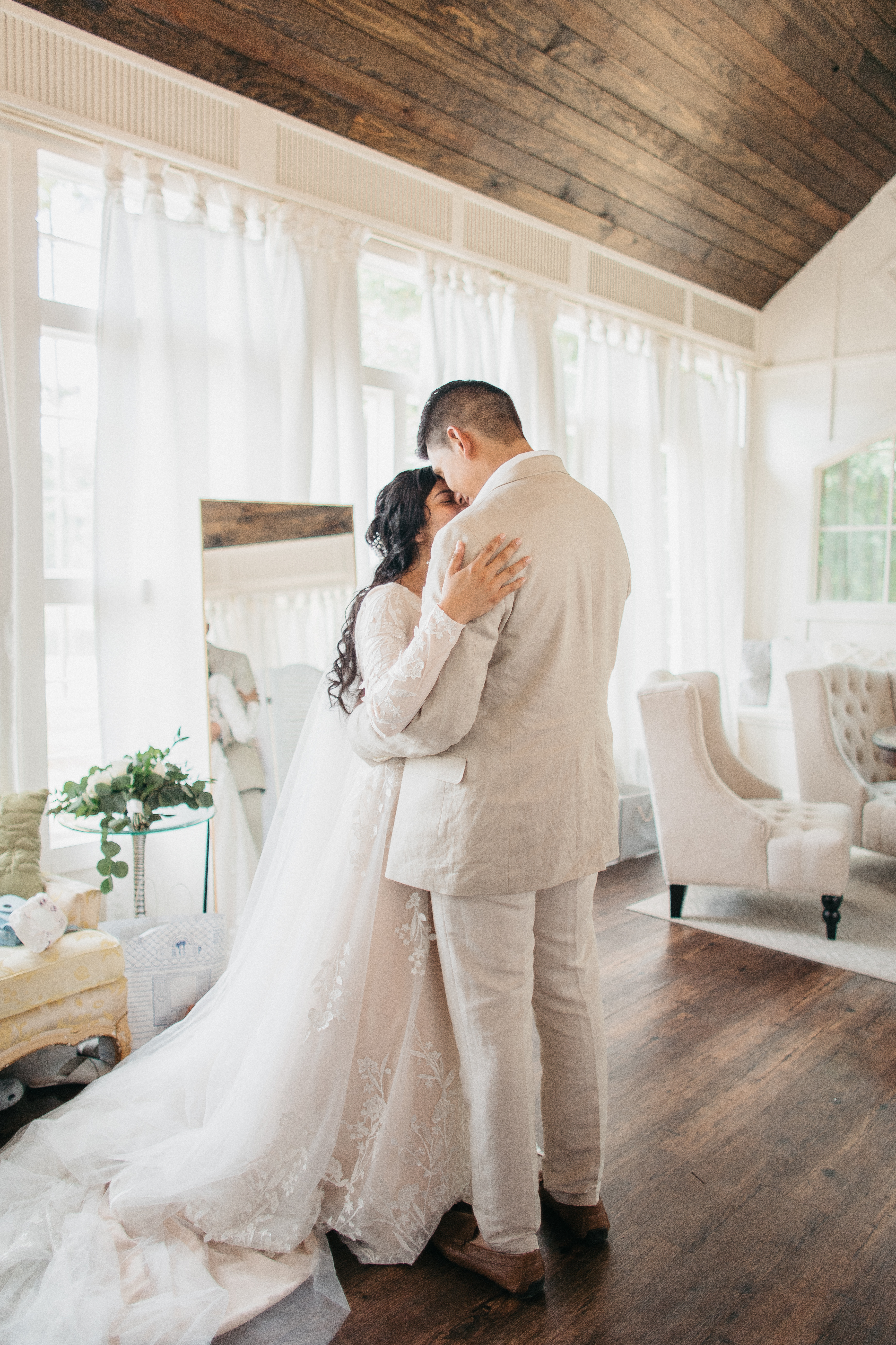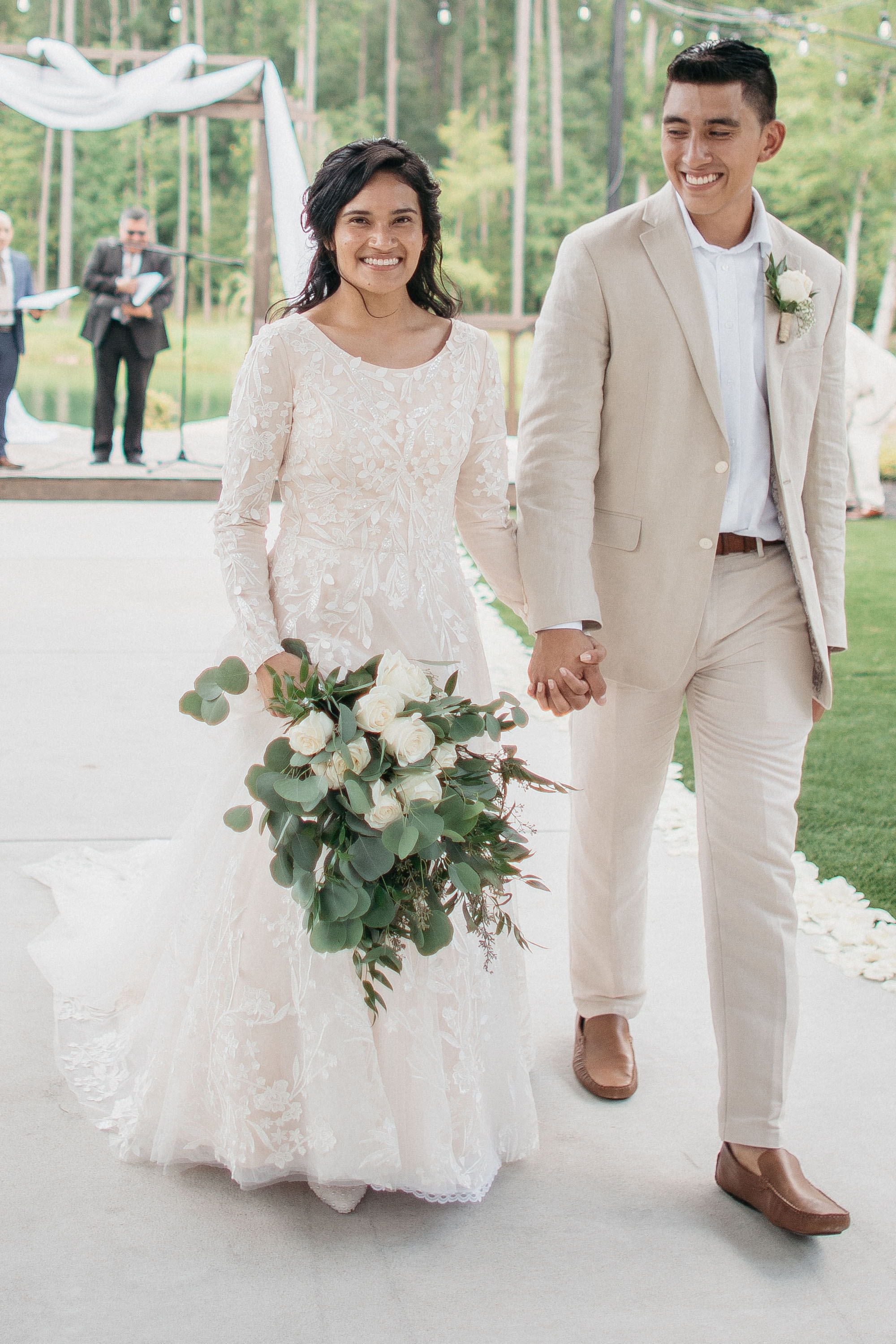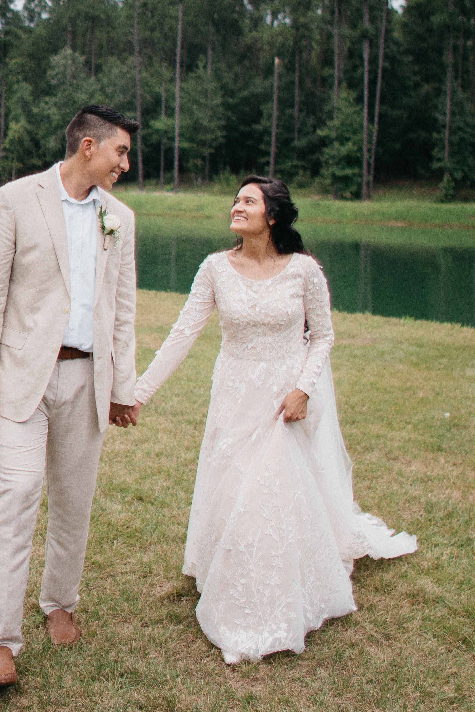 Our Leif gown is the perfect mix of traditional and modern touches. This flattering A-line silhouette is designed with a full tulle and lace skirt embellished with a vine and leaf pattern. Leif is designed with a scoop neck and fully lined long sleeves which are light enough to make her the perfect dress for any season.
