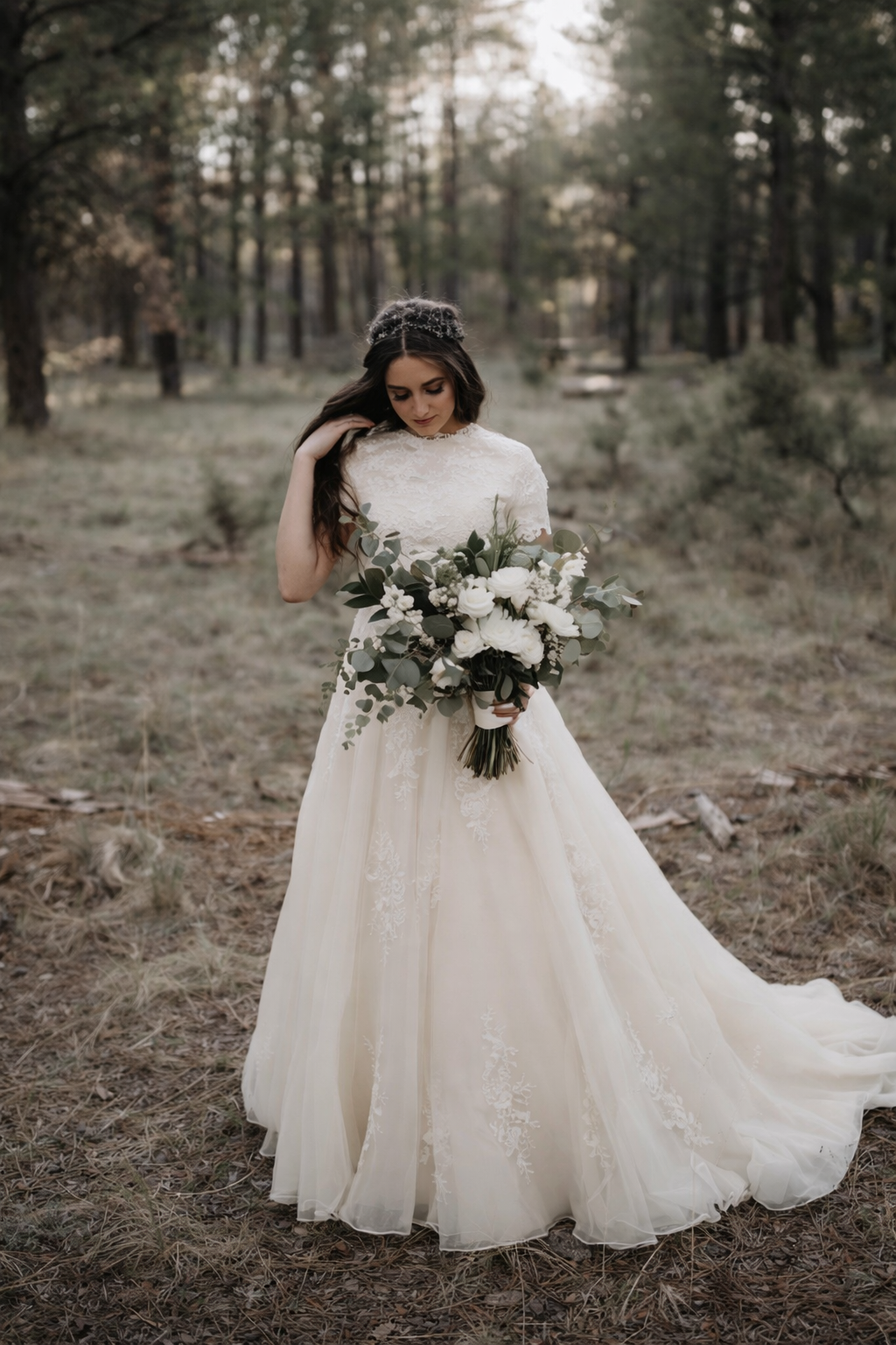 Our Wanessa dress is a modern, modest A-line wedding dress.